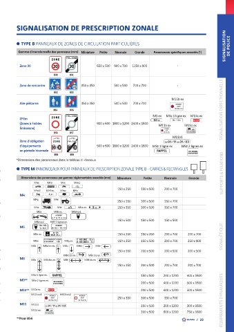 Gamme dimensionnelle des panneaux (mm) Miniature Petite M6j Normale Grande Panonceaux spécifiques associés (*)