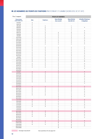 LES NOMBRES DE POINTS DE FIXATIONS PAR FORMAT ET GAMME (HORS D29, DC ET DV*)